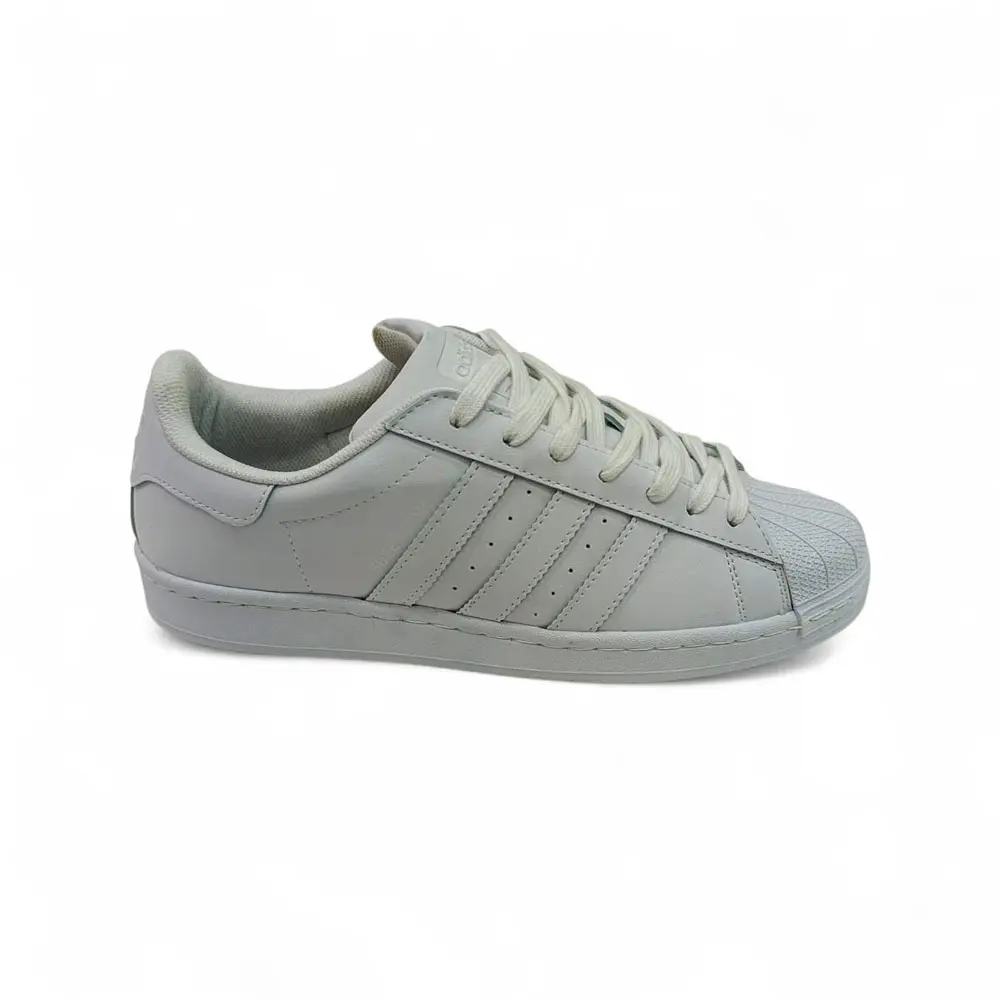 Adidas’ın ikonik modellerinden Superstar, yıllardır sokak modasının vazgeçilmez parçası olmaya devam ediyor. Tamamen beyaz taban ve beyaz tasarımı ile her kombine uyum sağlayan bu model, şıklığı ve rahatlığı bir arada sunar.