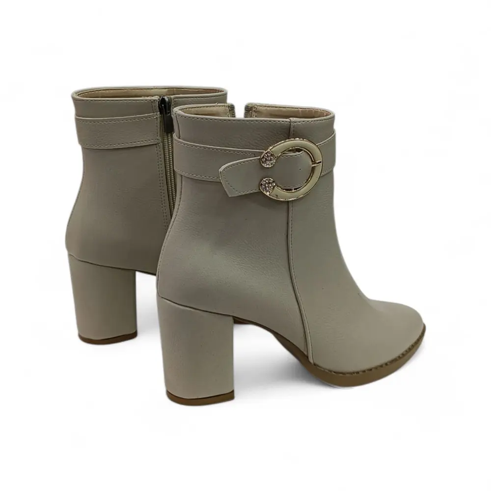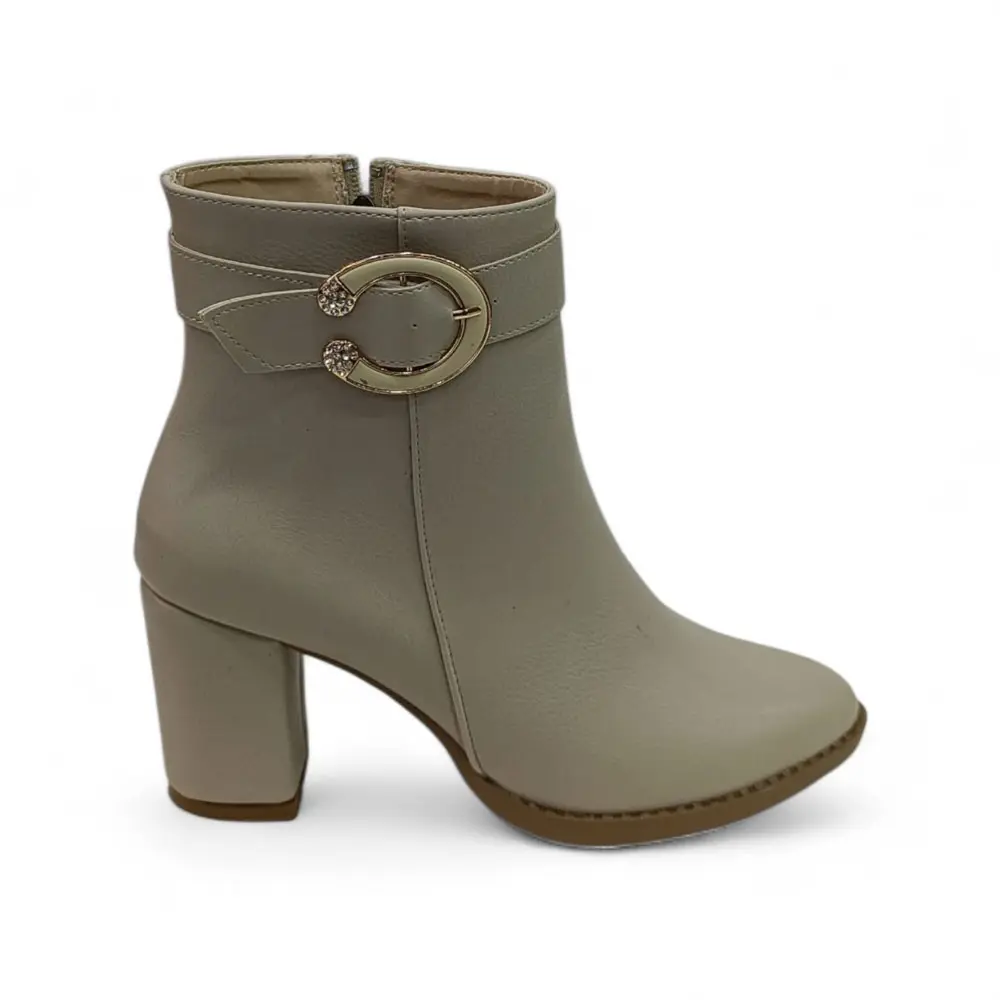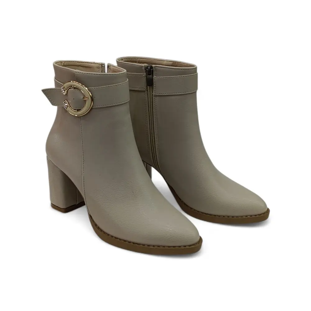 Bej Toka Detaylı Yandan Fermuarlı Kalın Topuklu Kadın Bot