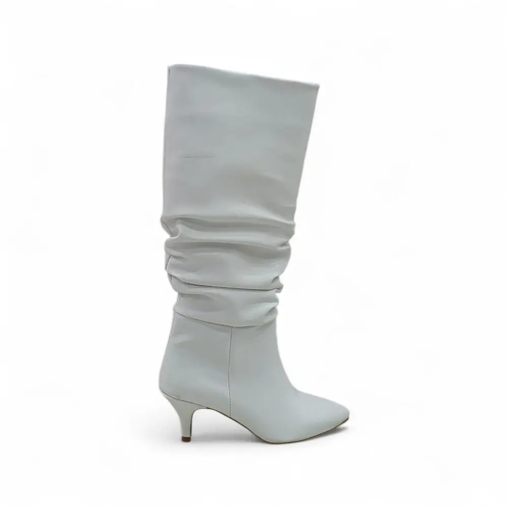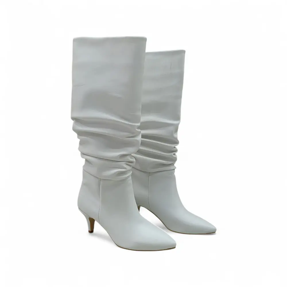 Körüklü İnce Topuklu Kadın Çizme, yumuşak süet benzeri dokusu, diz altına uzanan körüklü (ruched) yapısı ve zarif ince topuğu ile klasik kış botlarına sofistike ve feminen bir alternatif sunar. Özel günler ve şık günlük kombinler için mükemmel bir tercihtir.