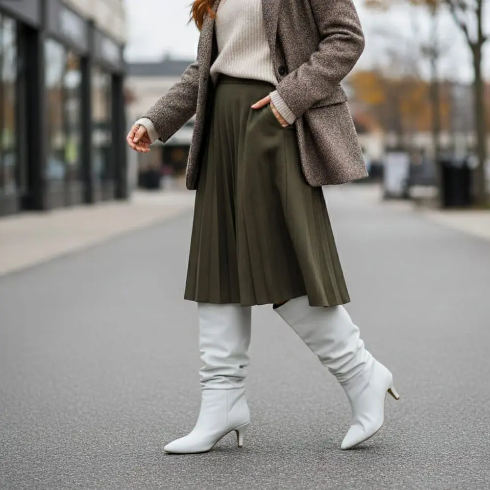 Feminen Topuk: Kısa, ince ve zarif topuk yapısı (kitten heel veya kısa stiletto) çizmeye şık bir yükseklik kazandırır ve feminen silüeti destekler.