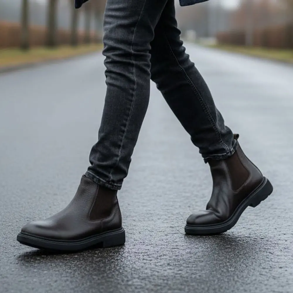 Kahve Hakiki Deri Erkek Chelsea Bot