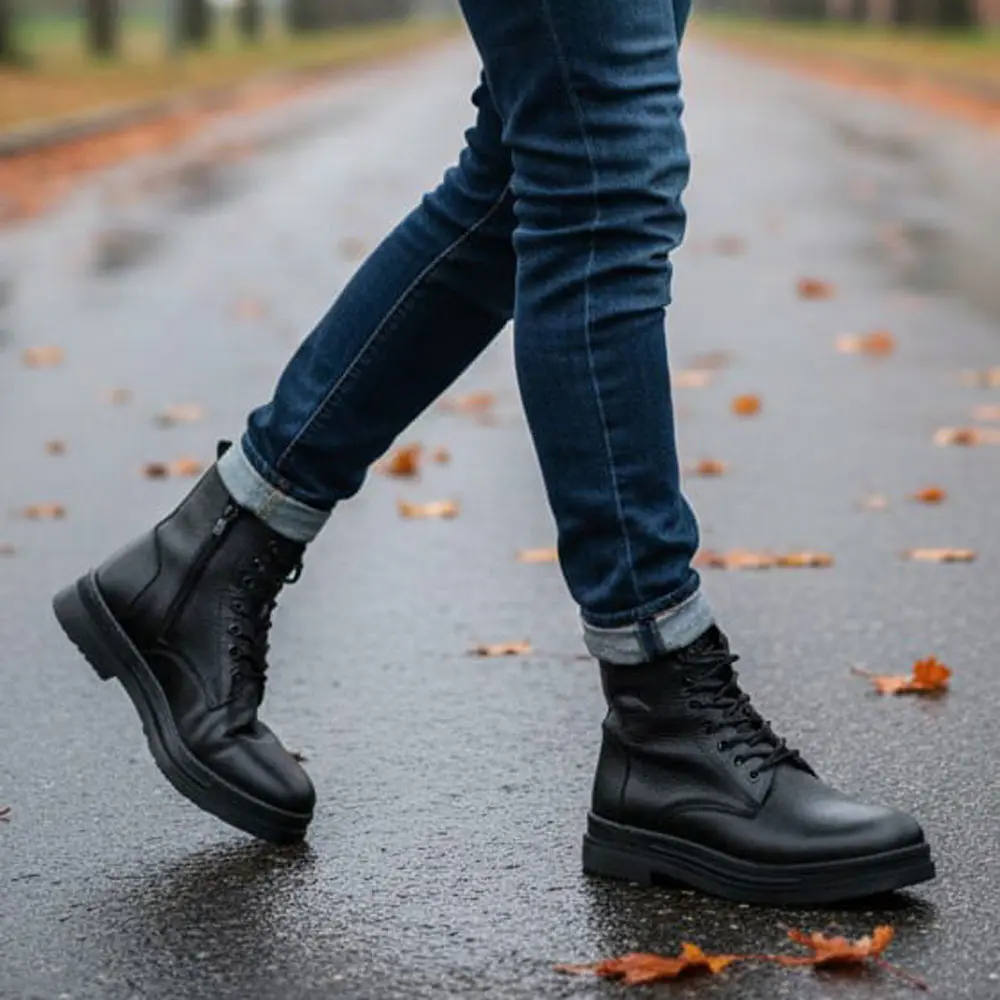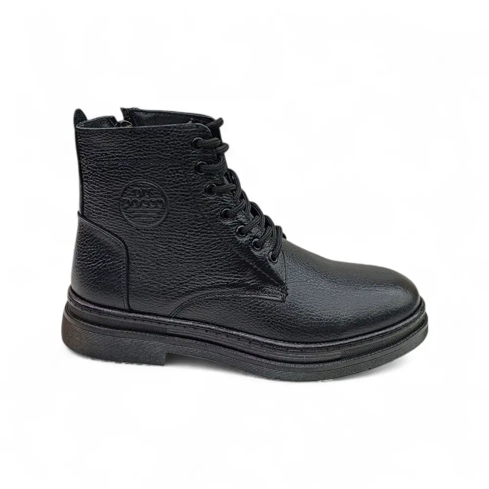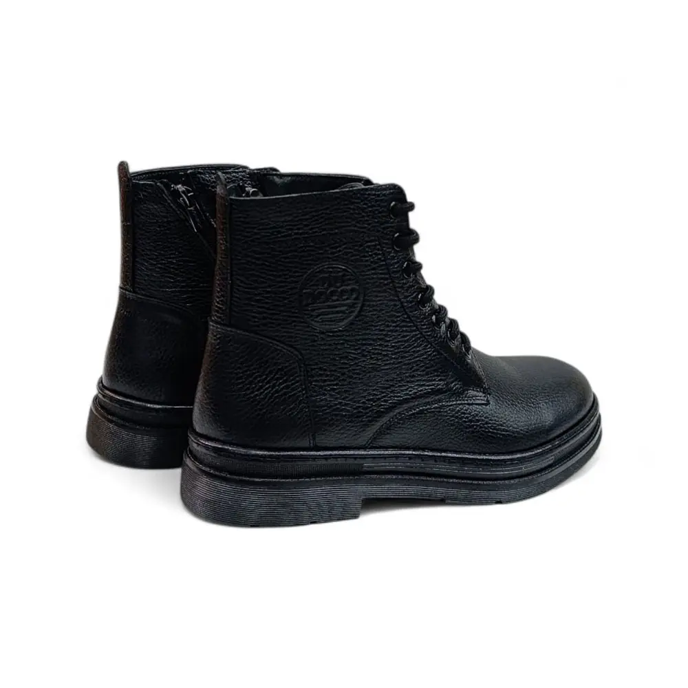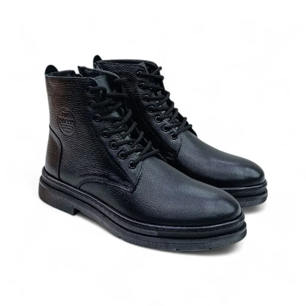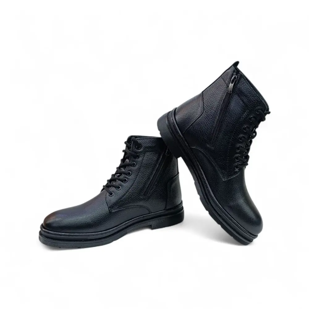 Siyah Önden Bağcıklı Yandan Fermuarlı Hakiki Deri Erkek Bot, klasik tarzı modern detaylarla birleştirerek her adımda güçlü bir duruş sergilemek isteyen erkekler için ideal bir seçenektir.