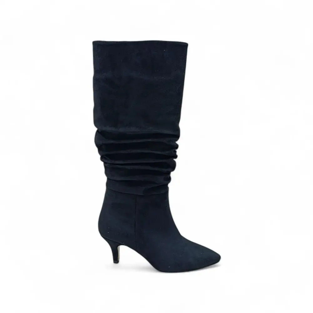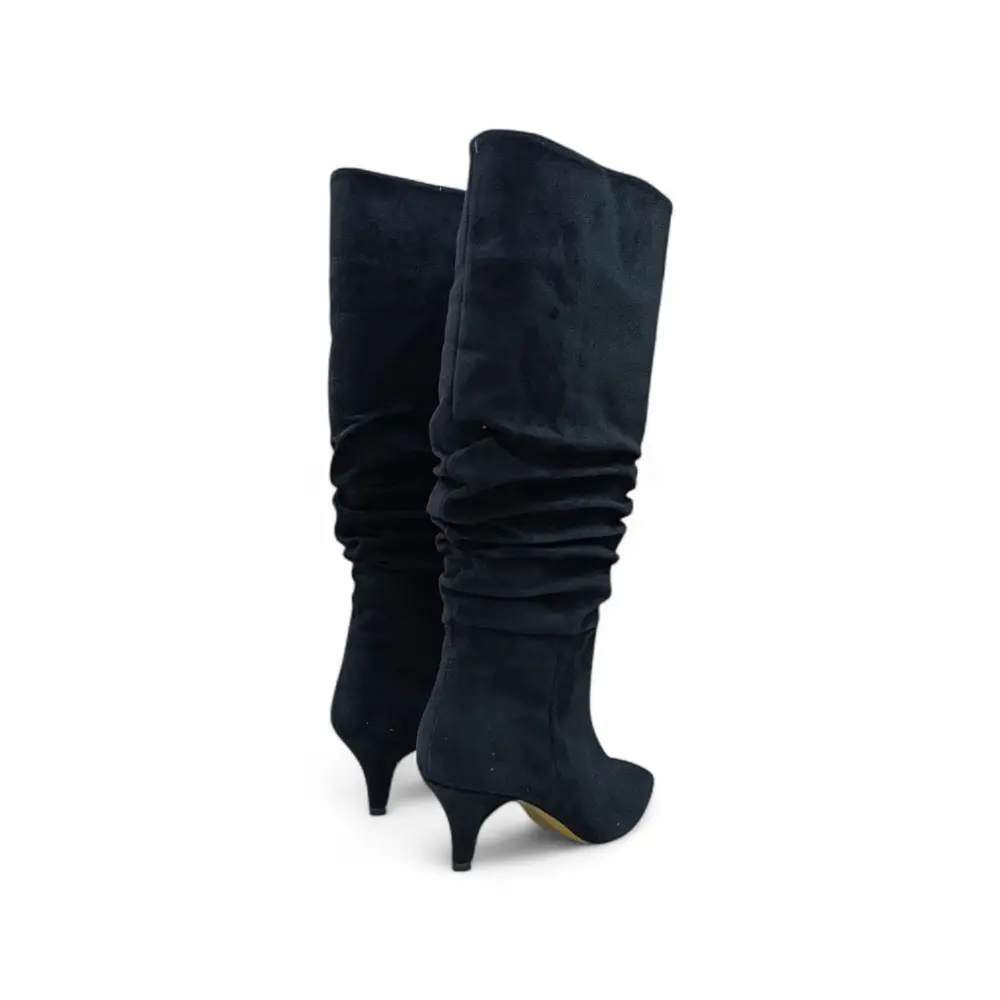 Siyah Süet İnce Taban Körüklü Dizaltı Sivri Burun Kadın Çizme