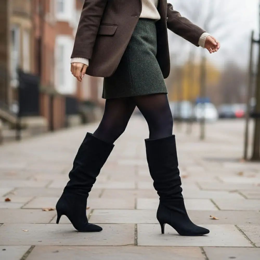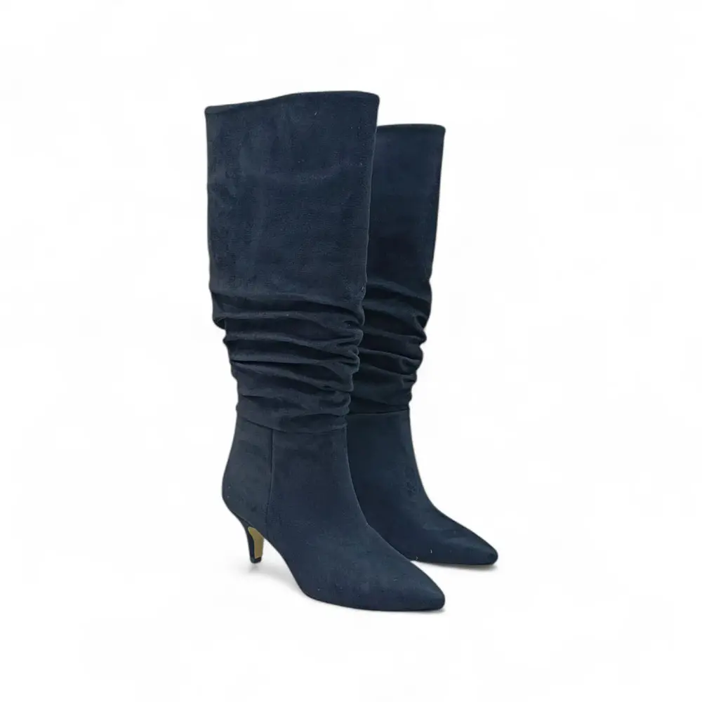 Körüklü İnce Topuklu Kadın Çizme, yumuşak süet benzeri dokusu, diz altına uzanan körüklü (ruched) yapısı ve zarif ince topuğu ile klasik kış botlarına sofistike ve feminen bir alternatif sunar. Özel günler ve şık günlük kombinler için mükemmel bir tercihtir.