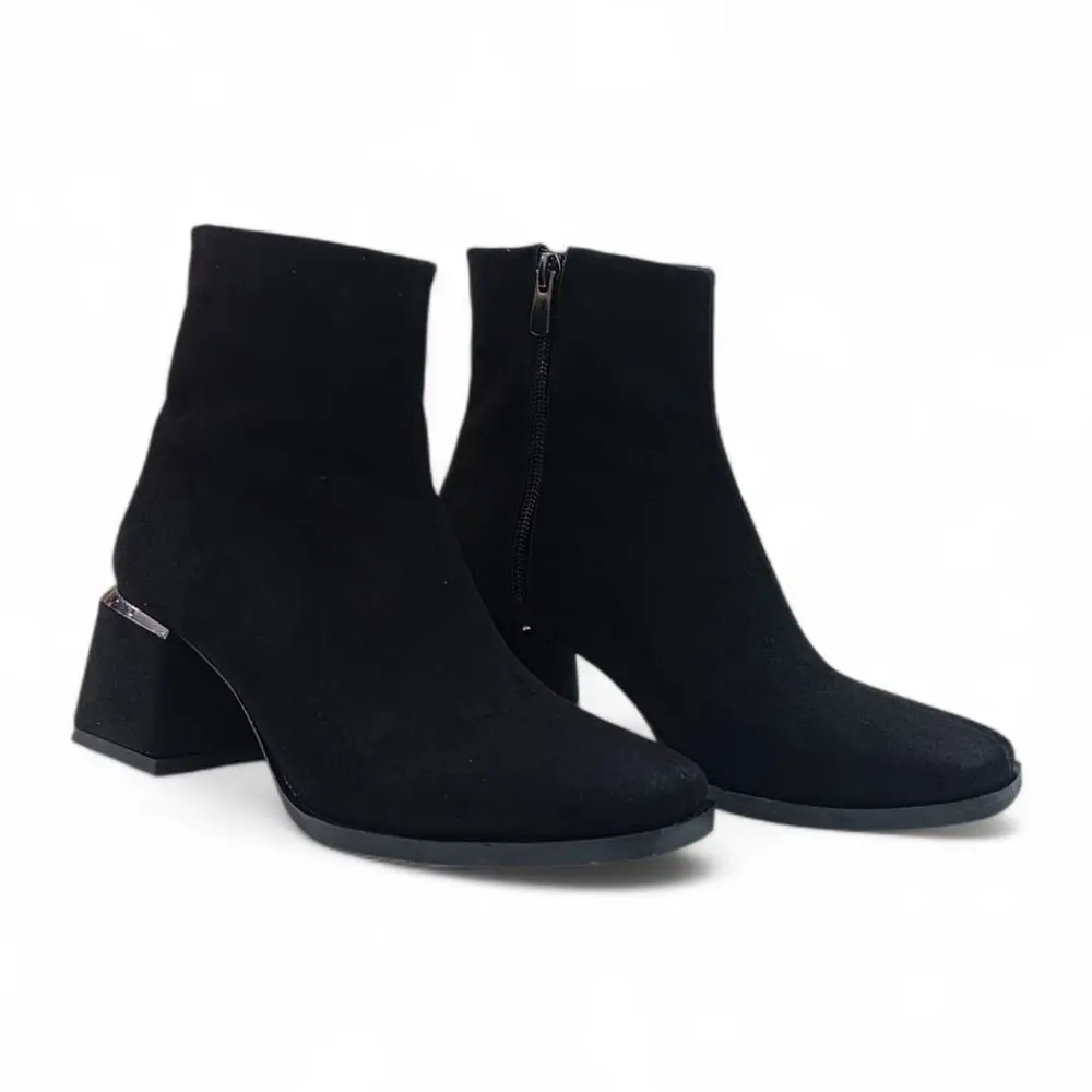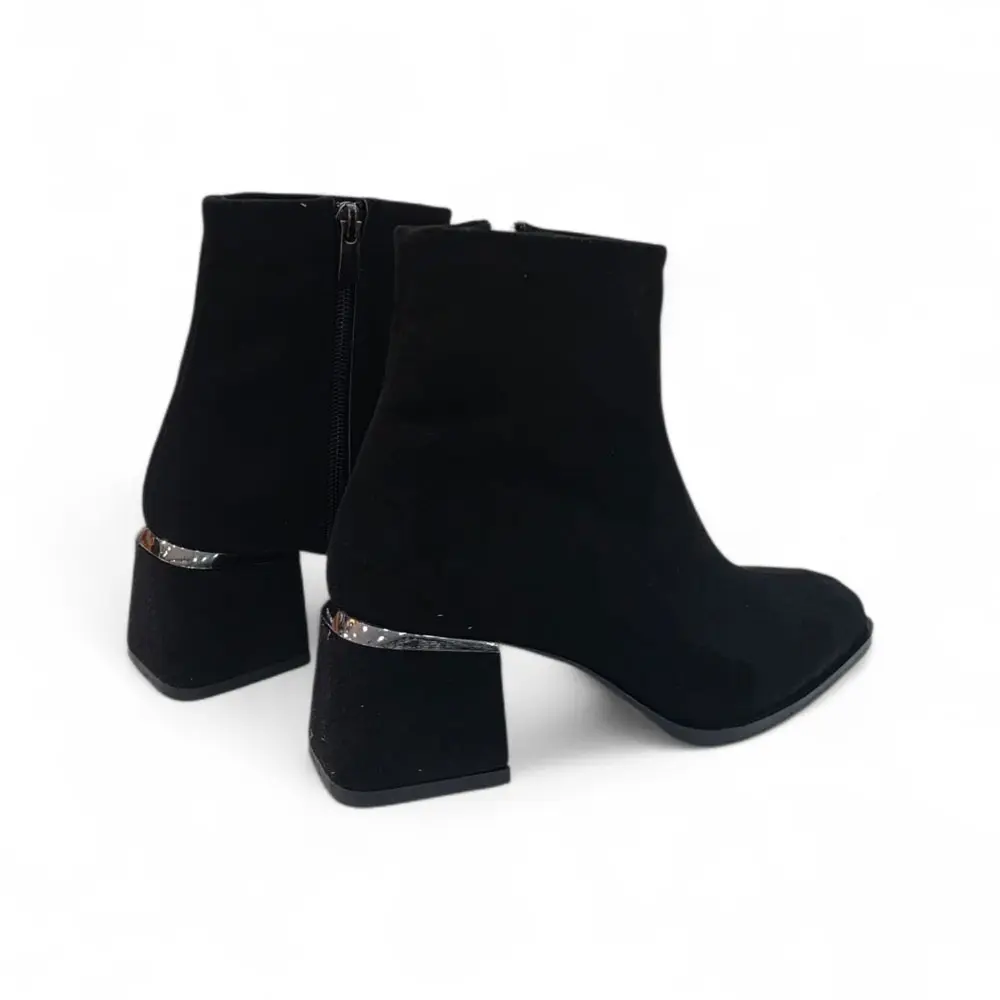 Siyah Süet Kısa Topuklu Yandan Fermuarlı Galvaniz Ökçe Kadın Bot