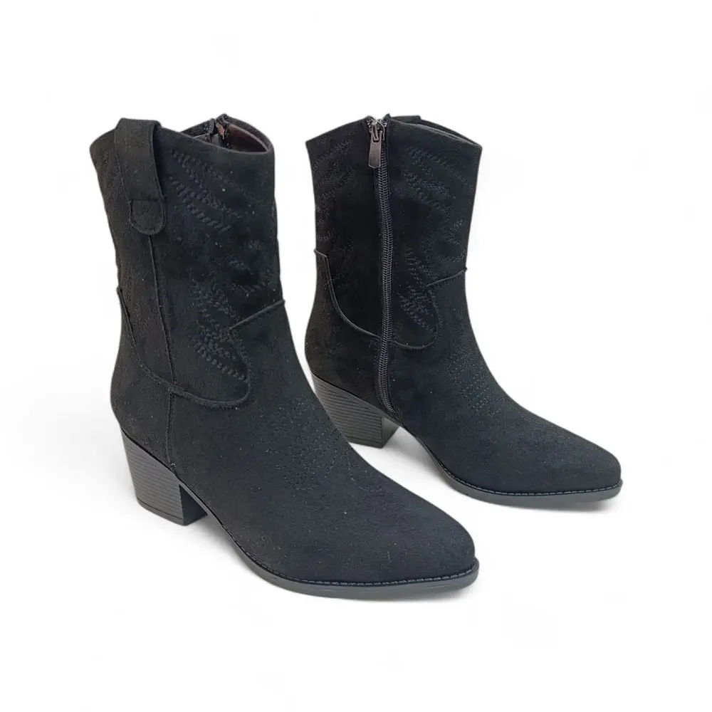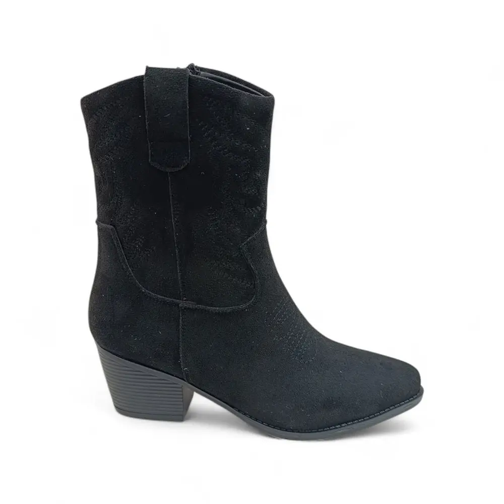 Siyah Süet Yandan Fermuarlı  Kadın Kovboy bot