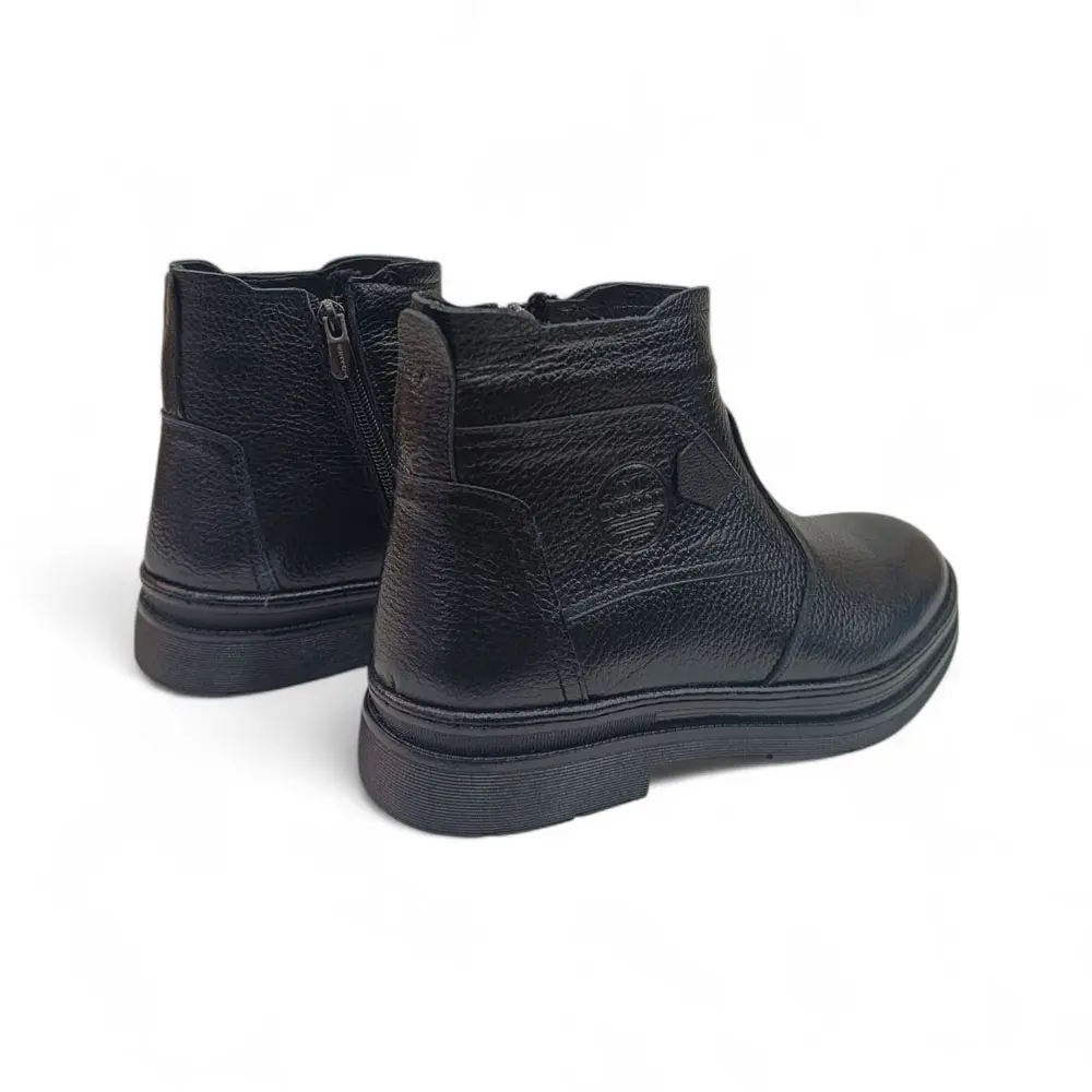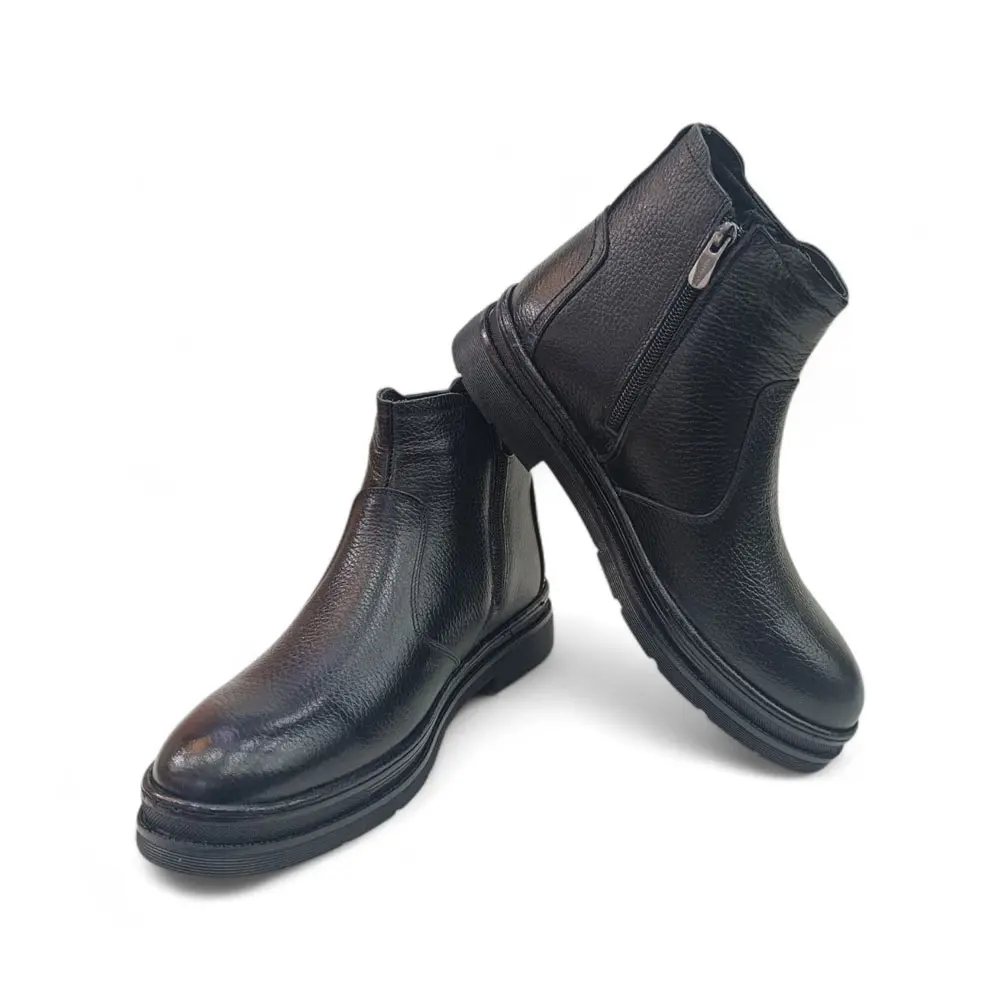 Siyah Yandan Fermuarlı Hakiki Deri Erkek Bot
