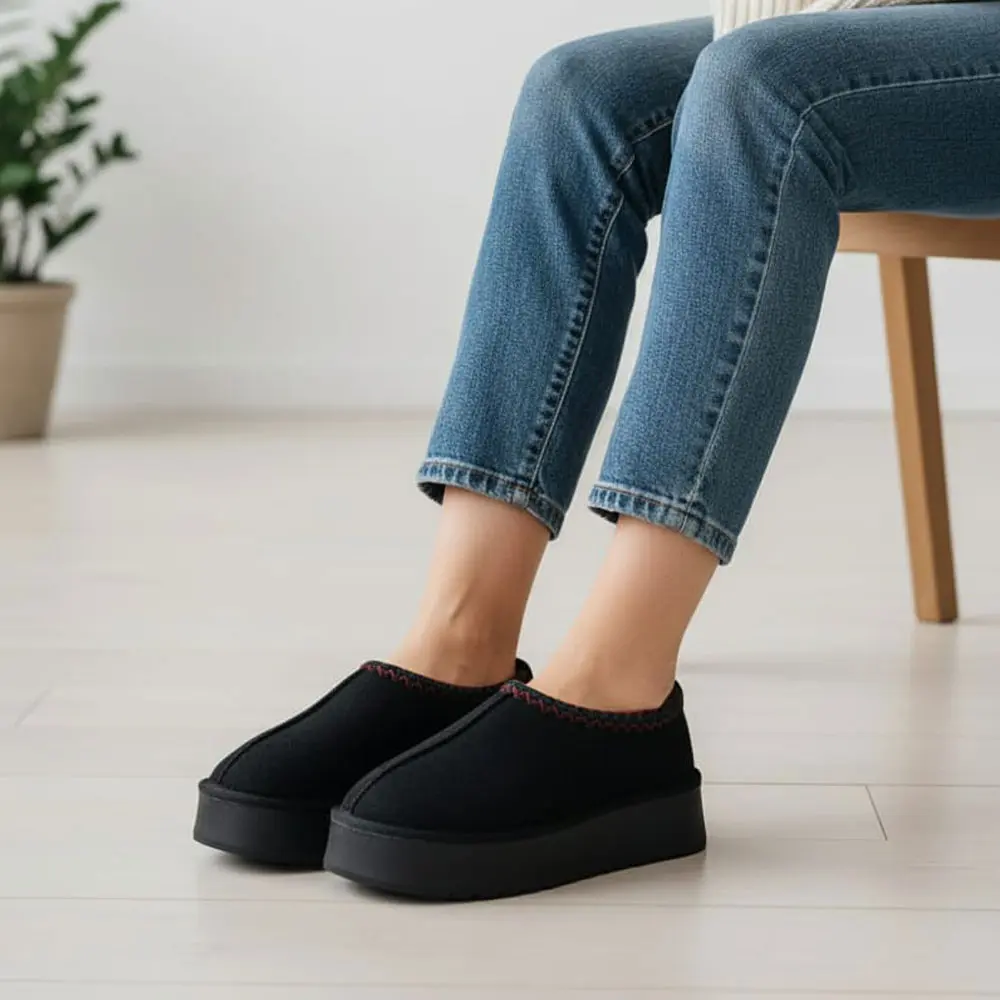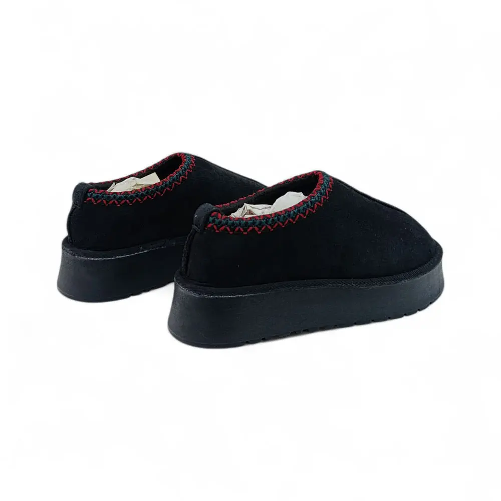 Süet Kalın Tabanlı İçi Kürklü Kadın Terlik / Patik, ikonik konforu, modern platform taban trendi ve rengarenk örgü bilek detayıyla birleştiriyor. Soğuk kış günlerinde ayaklarınızı sıcacık tutarken, dışarıda da şık ve trend bir görünüm sergilemek isteyenler için idealdir.