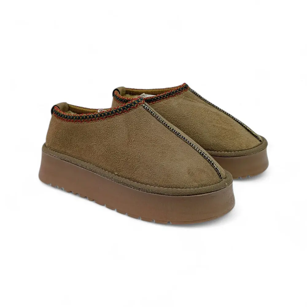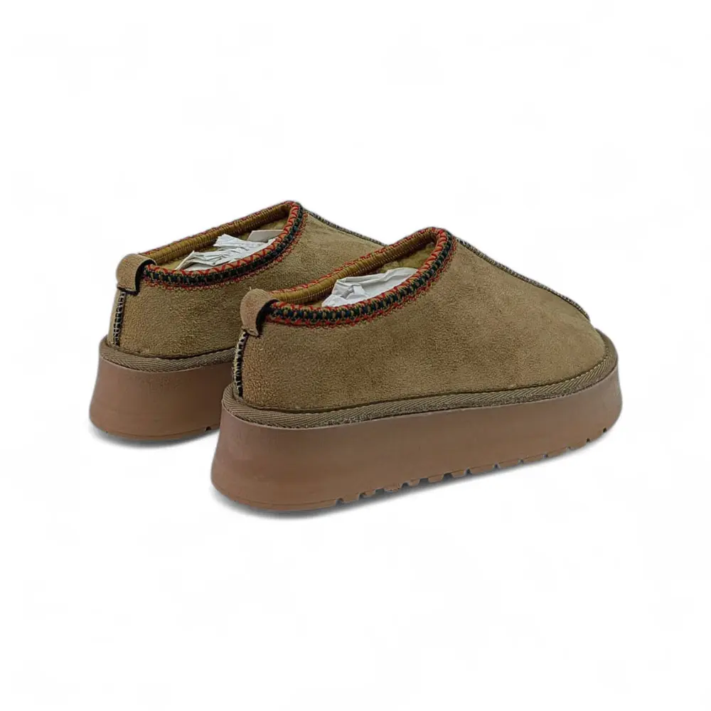 Süet Kalın Tabanlı İçi Kürklü Kadın Terlik / Patik, ikonik konforu, modern platform taban trendi ve rengarenk örgü bilek detayıyla birleştiriyor. Soğuk kış günlerinde ayaklarınızı sıcacık tutarken, dışarıda da şık ve trend bir görünüm sergilemek isteyenler için idealdir.