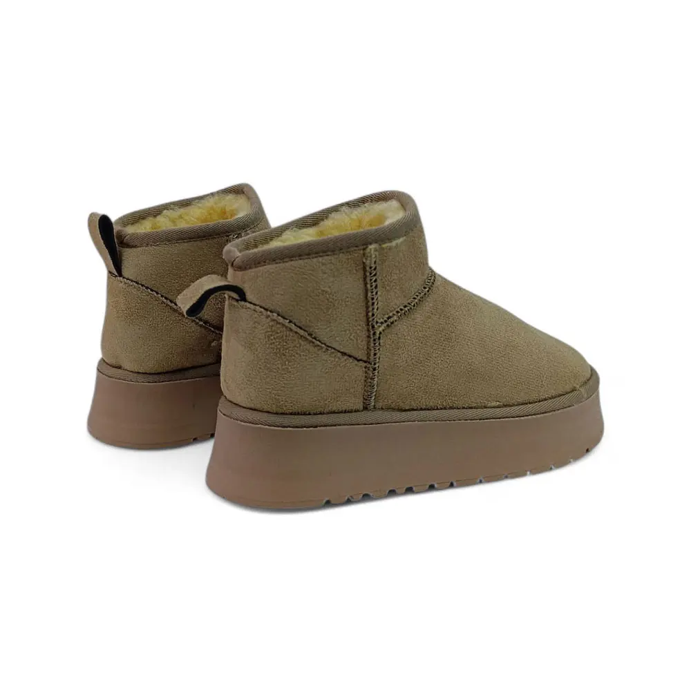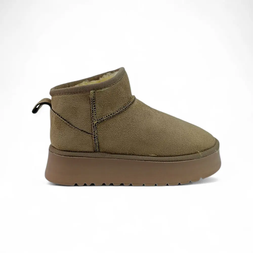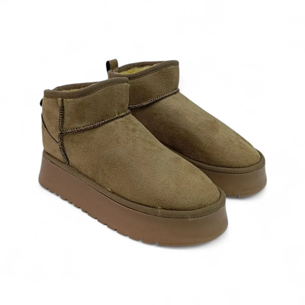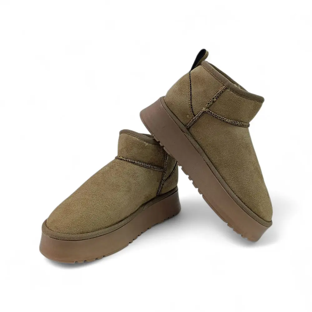 Süet Kalın Taban İçi Kürklü Ultra Mini Bot, klasikleşmiş konforu son dönemin en popüler platform taban trendiyle birleştiriyor. İçi tamamen sıcak tutan kürkle (veya yün astar) kaplı bu model, ultra kısa formu ve yüksek tabanı sayesinde kış konforunu ve yükseltilmiş sokak stilini bir arada arayanlar için vazgeçilmezdir.