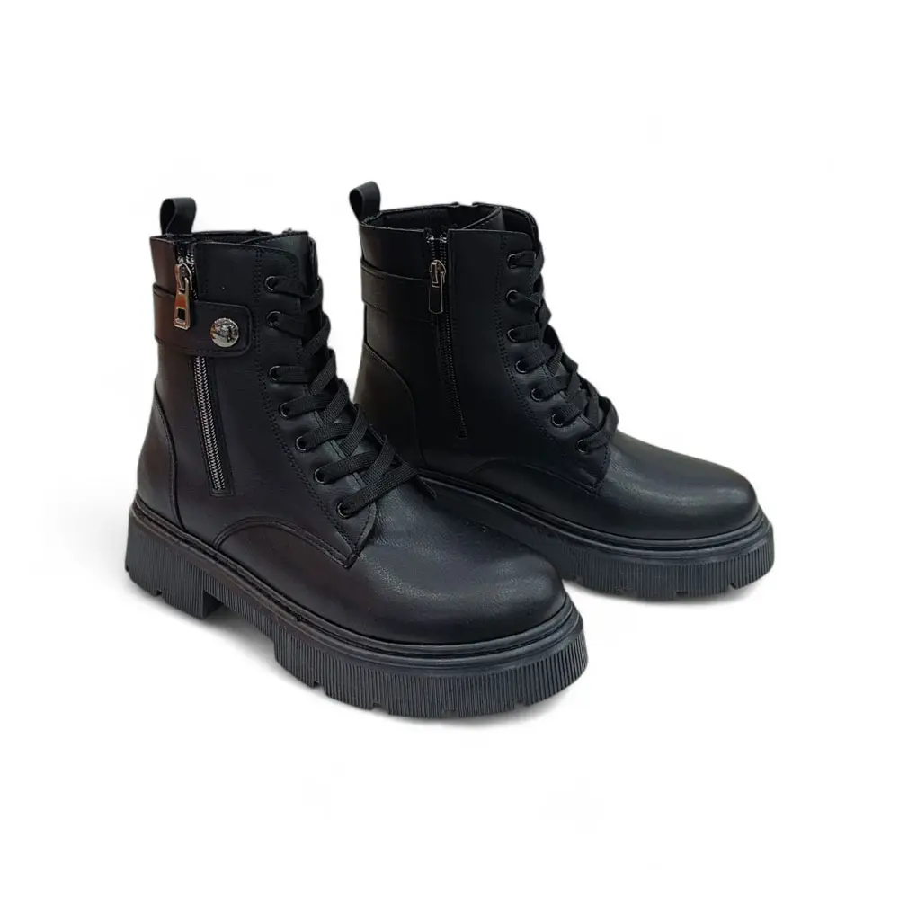 Bu kısa bot modeli, kalın ve tırtıklı tabanı ile modern bir duruş sergilerken, zarif kemer ve toka detayları ile klasik postal stiline hareket katmaktadır. Sonbahar ve kış kombinlerinin vazgeçilmezi olan bu model, şıklığı ve fonksiyonelliği bir arada sunar.