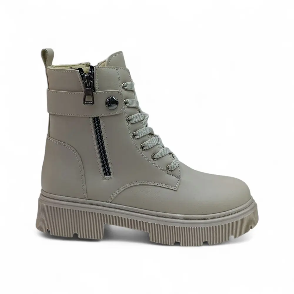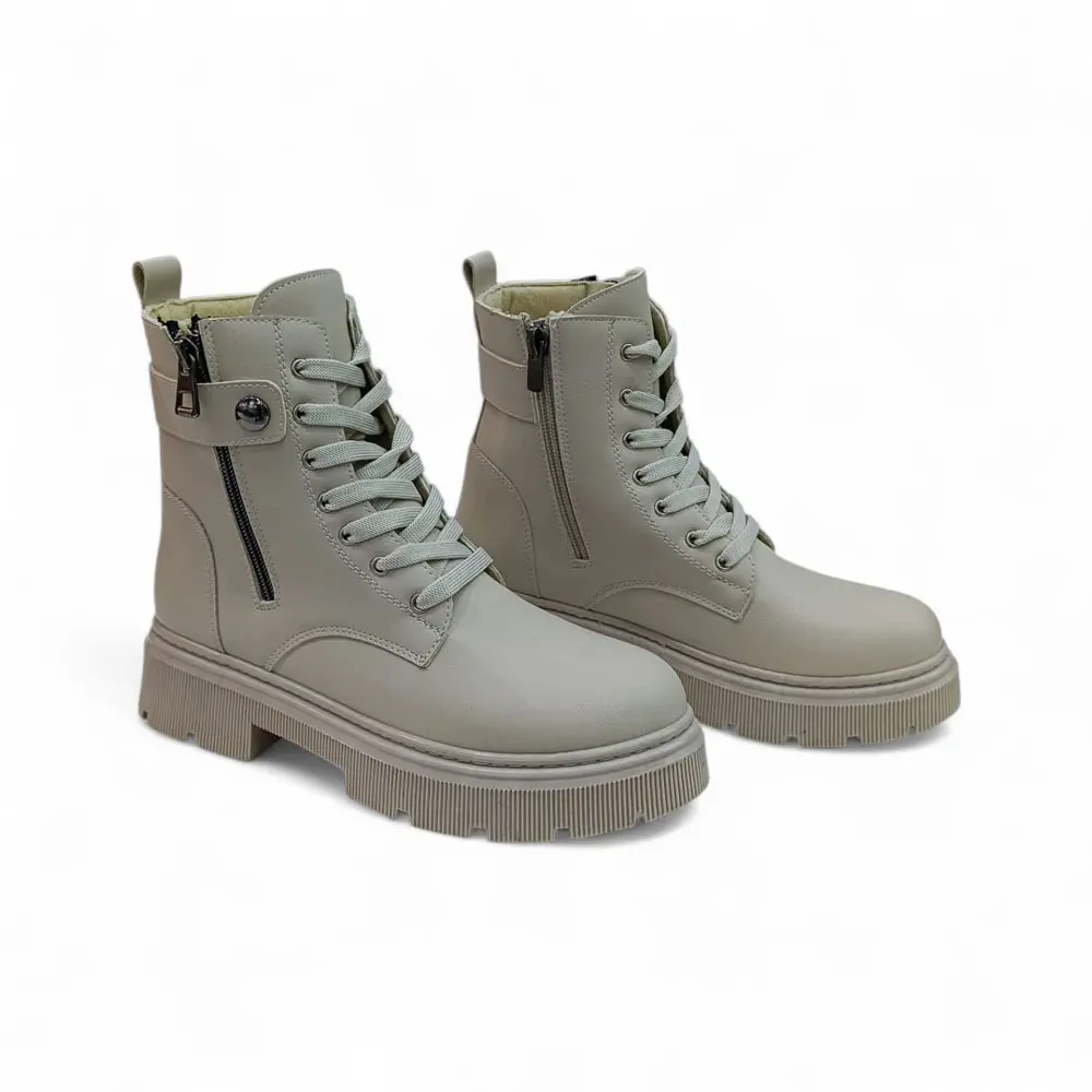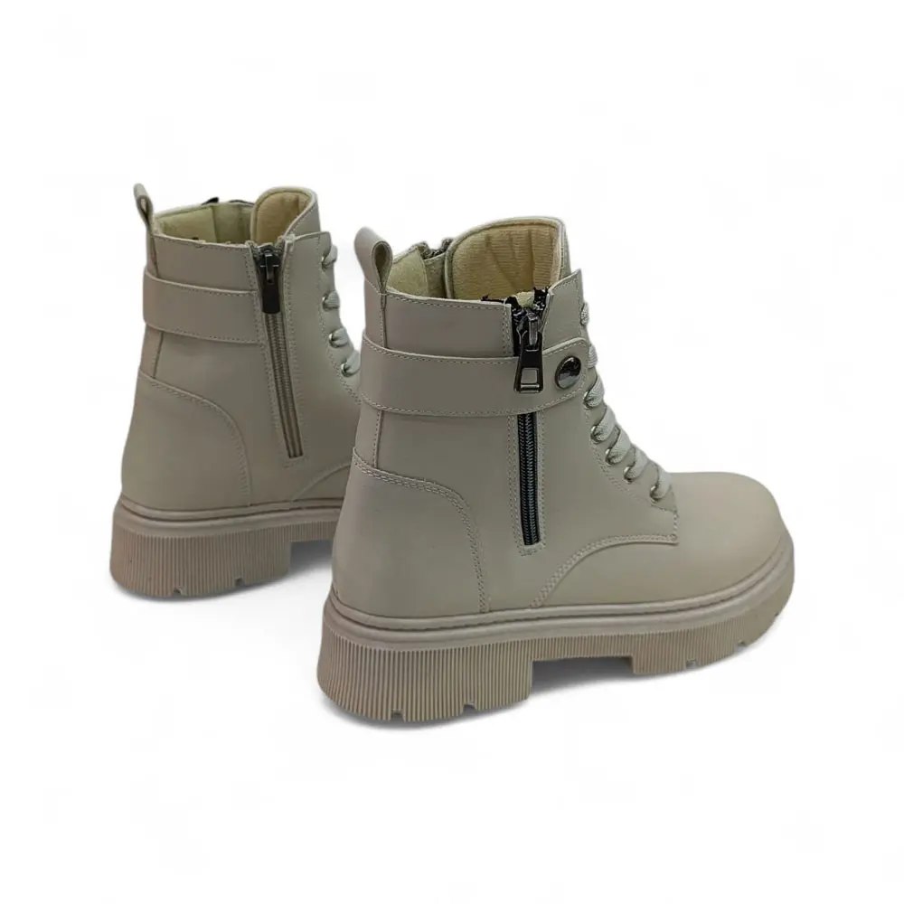 Bej Kemer Bağcıkl Detaylı Yandan Fermuarlı Kadın Kısa Bot