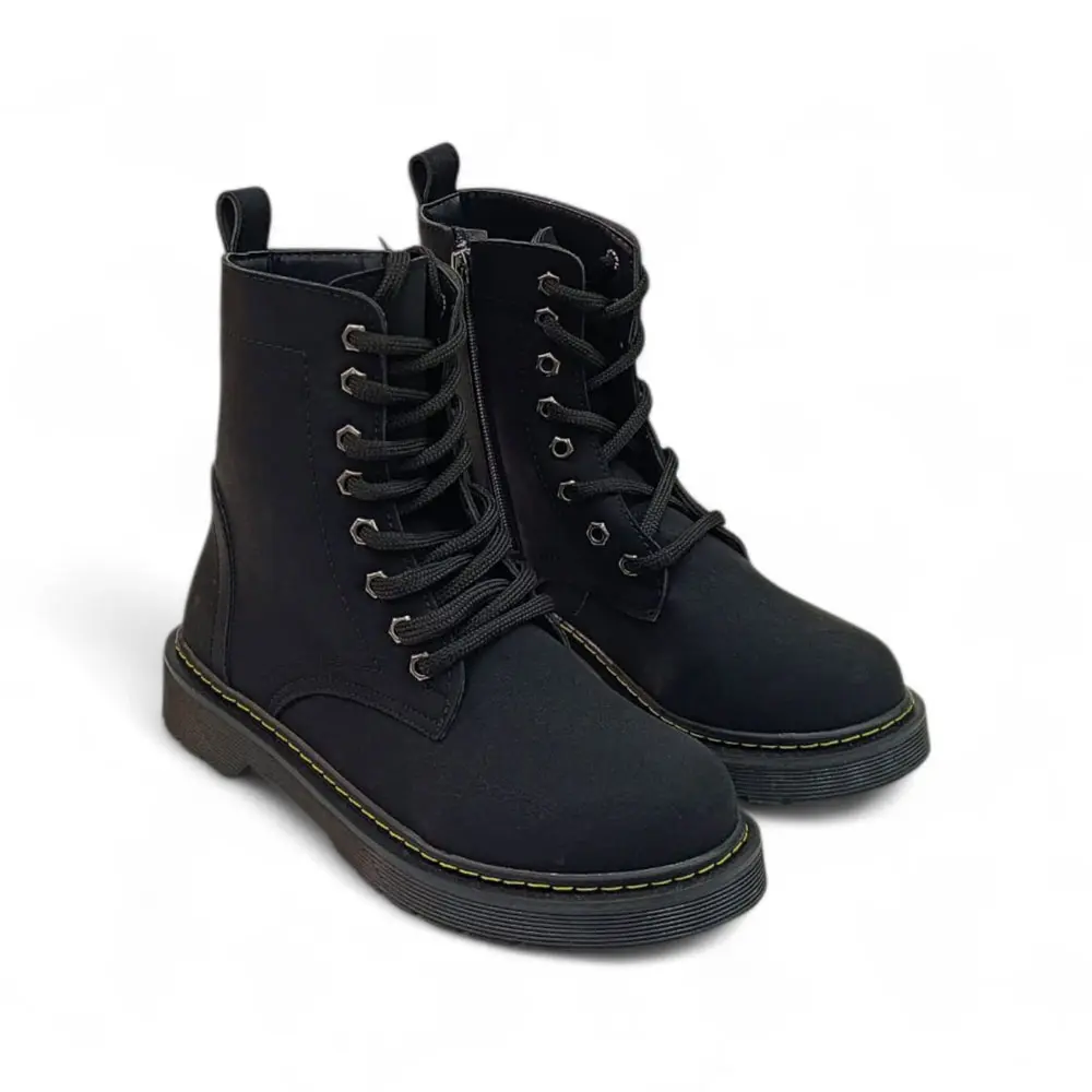 Kontrast Dikiş Detayı: Siyah yüzey ve taban ile kontrast oluşturan sarı veya açık renkli dikiş detayı, bota karakter katar ve klasik bir dokunuş ekler.