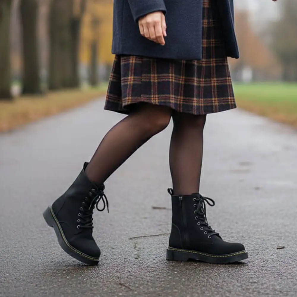 Pratik Giyim: Ön kısımdaki bağcıklar ayarlanabilir ve estetik bir görünüm sağlarken, yan tarafta bulunan fermuar detayı sayesinde botu hızlı ve kolay giyip çıkarabilirsiniz.