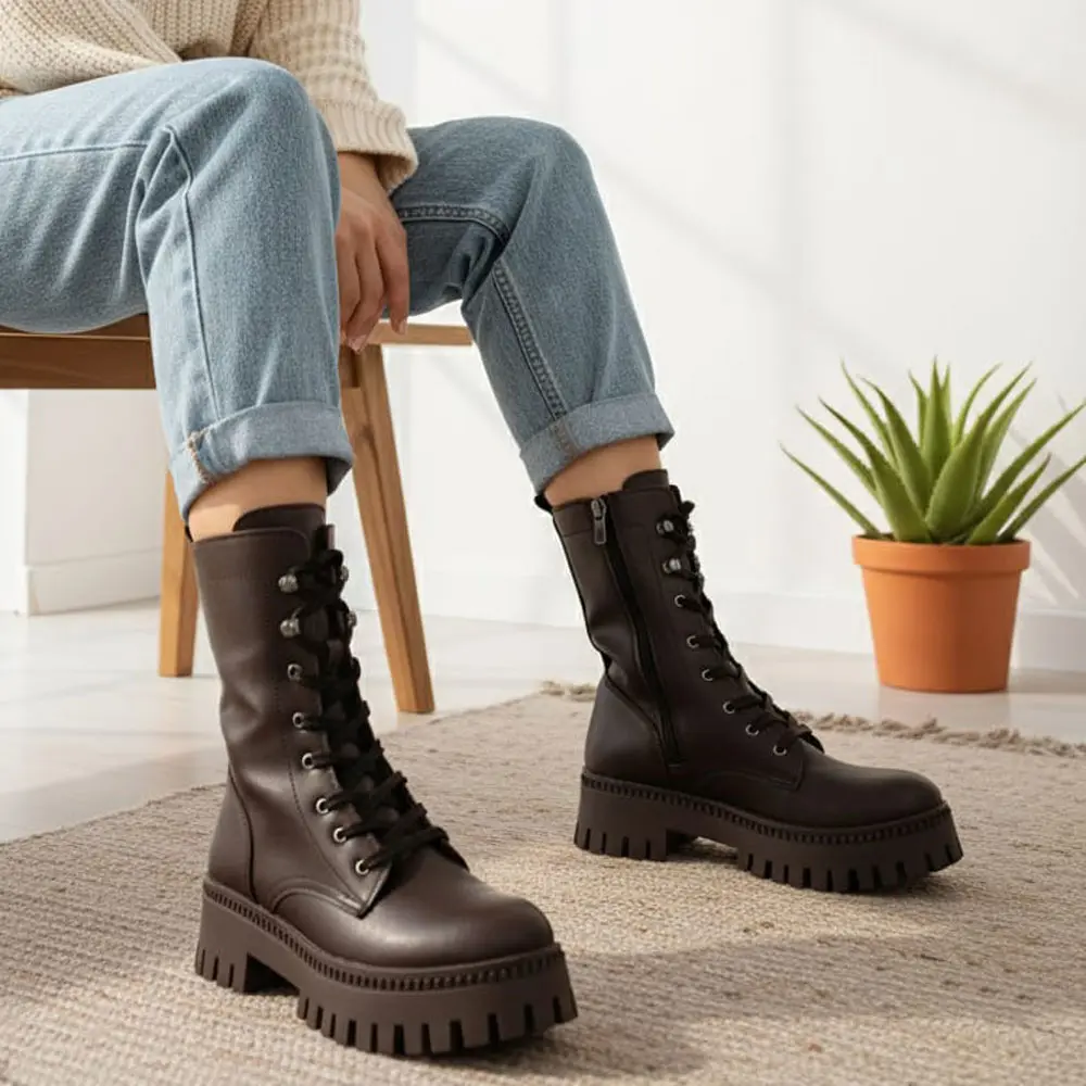 Tasarım: Klasik bağcıklı postal görünümüne sahiptir, bu da ayak bileğine kadar sağlam bir tutuş ve istenilen sıkılıkta ayarlama imkanı sunar.
