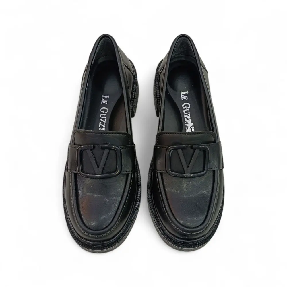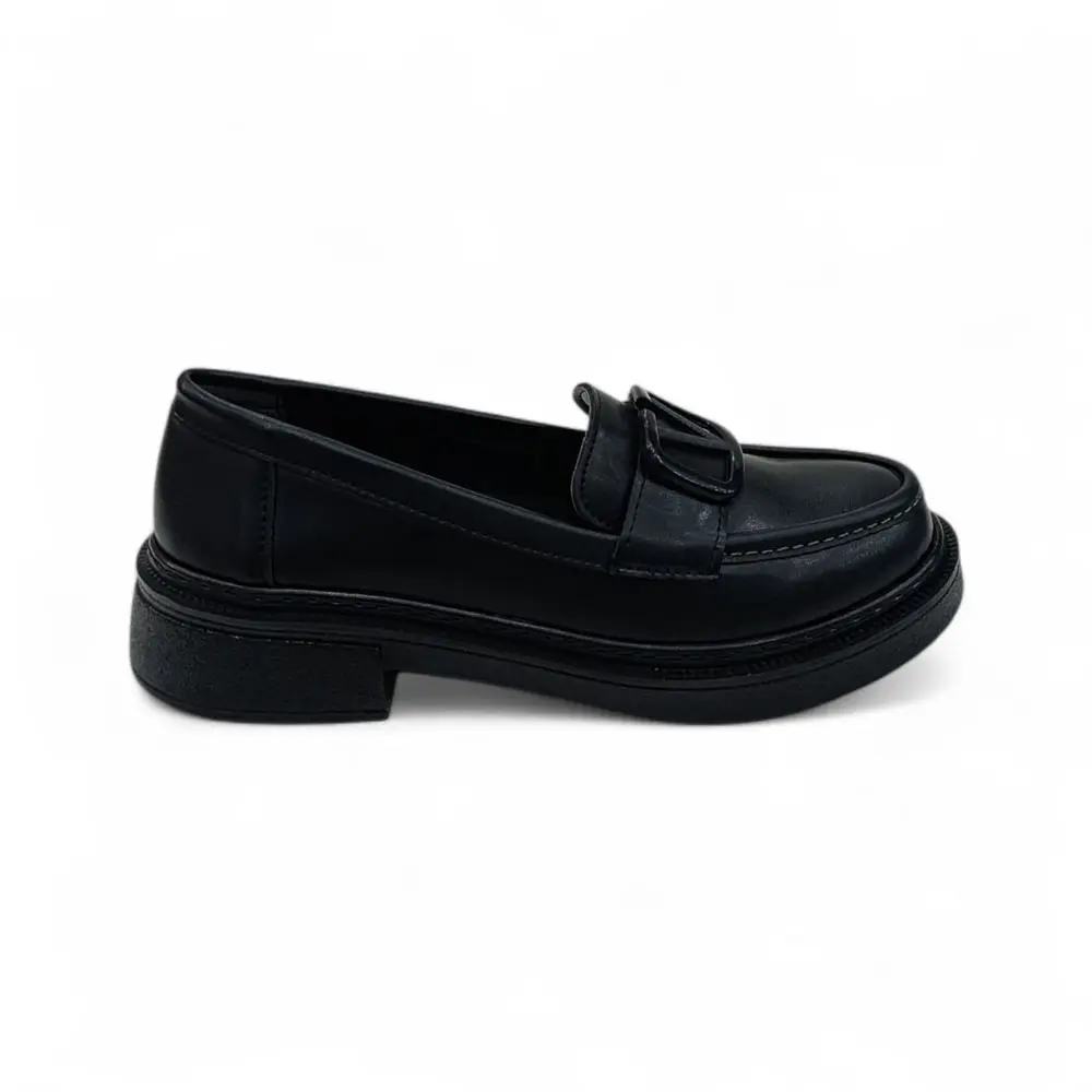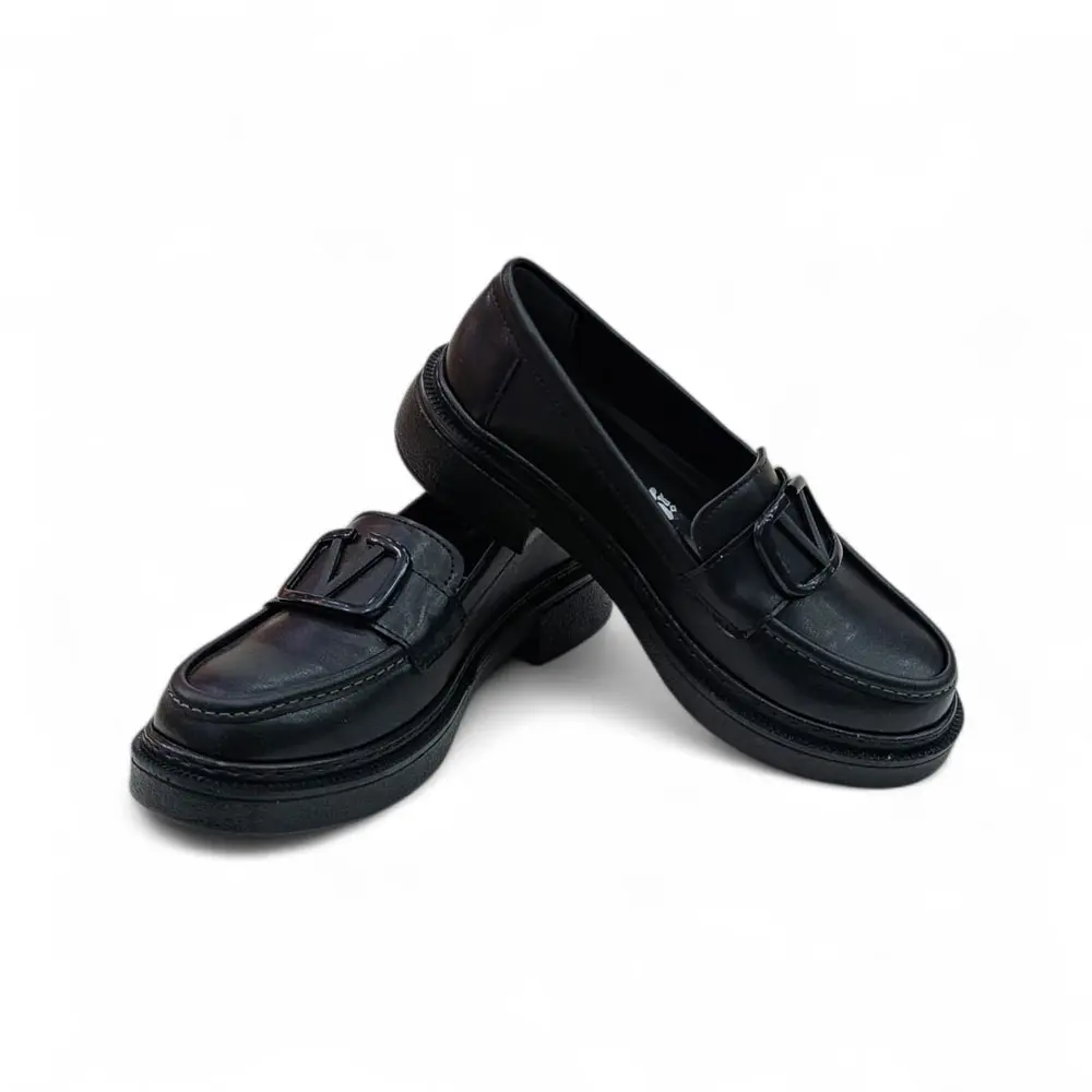 Siyah Cilt V toka Detaylı Kadın Loafer