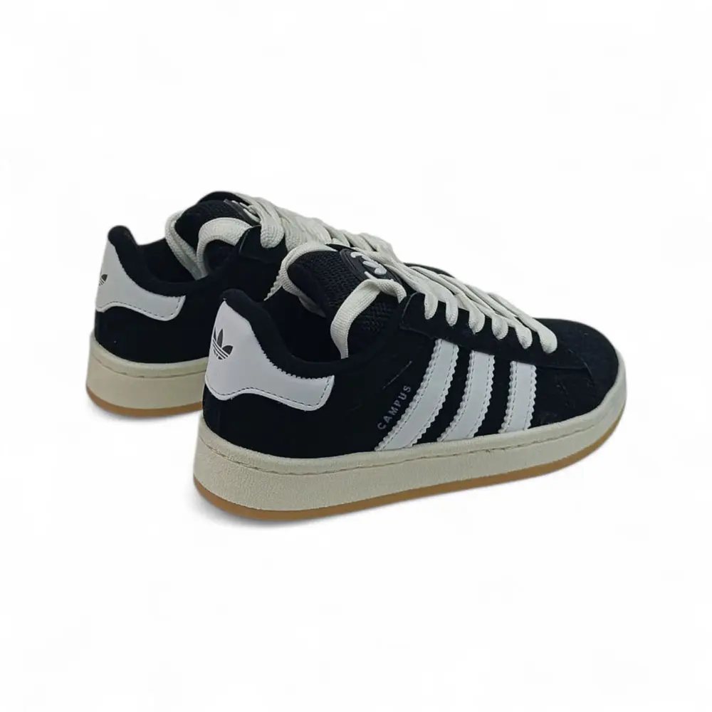 Kontrast Detaylar: Siyah ana renk üzerindeki belirgin beyaz şeritler ve kalın beyaz bağcıklar, ayakkabıya dinamik ve canlı bir hava katar.