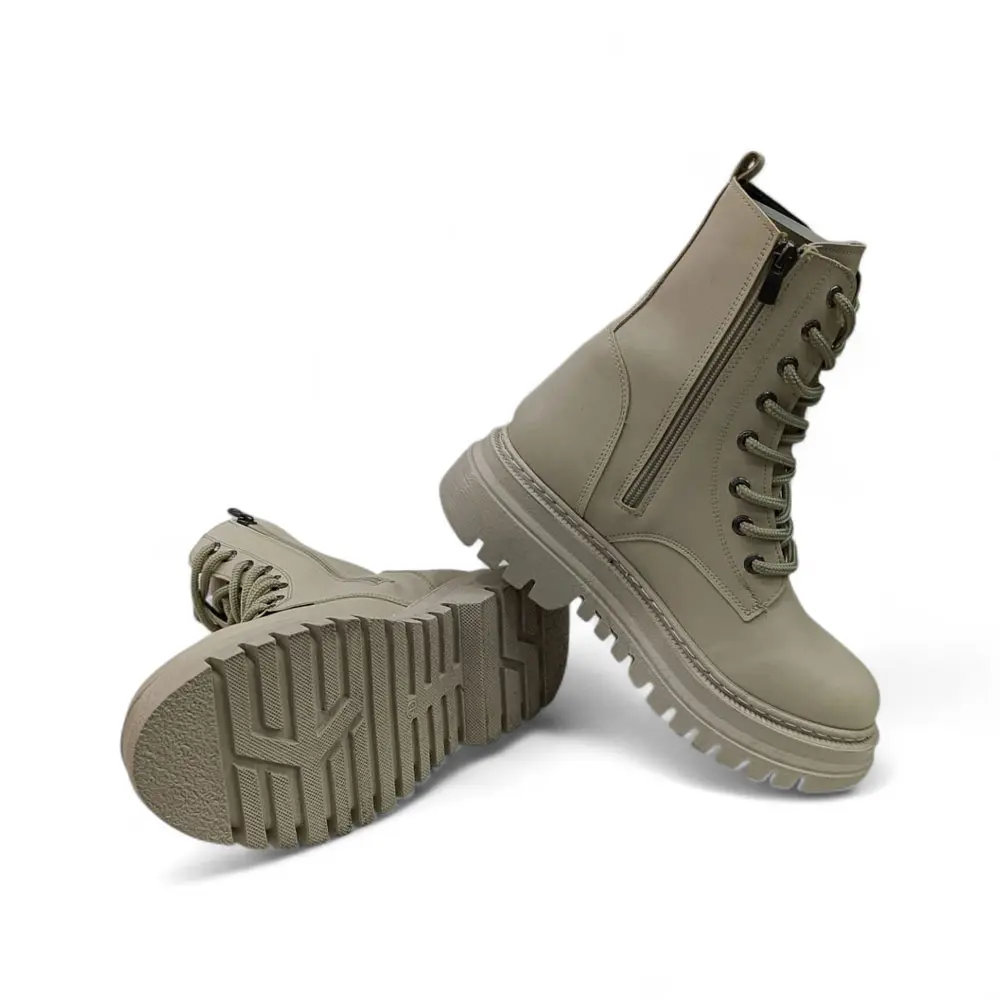 Çift Kullanım Pratiği: Ön kısımda bulunan bağcıklar estetik ve ayarlanabilir bir görünüm sunarken, yan taraftaki pratik fermuar detayı sayesinde botu kolayca giyip çıkarabilirsiniz.