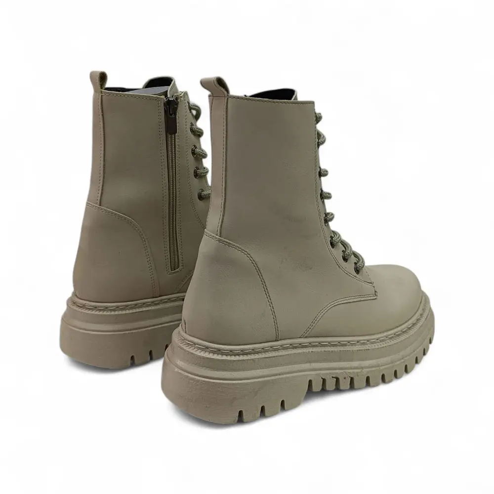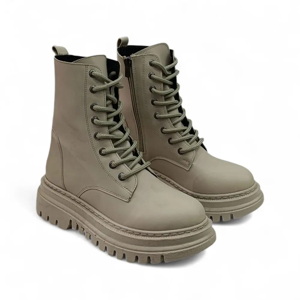 Bağcıklı Kalın Taban Sıcak Astarlı Kadın Bot, klasik combat (postal) bot tasarımını güncel kalın taban trendi ve kışa uygun sıcak astarıyla birleştiriyor. Soğuk havalarda ayakları sıcak tutarken, trend ve iddialı bir görünüm arayanlar için mükemmel bir tercihtir.