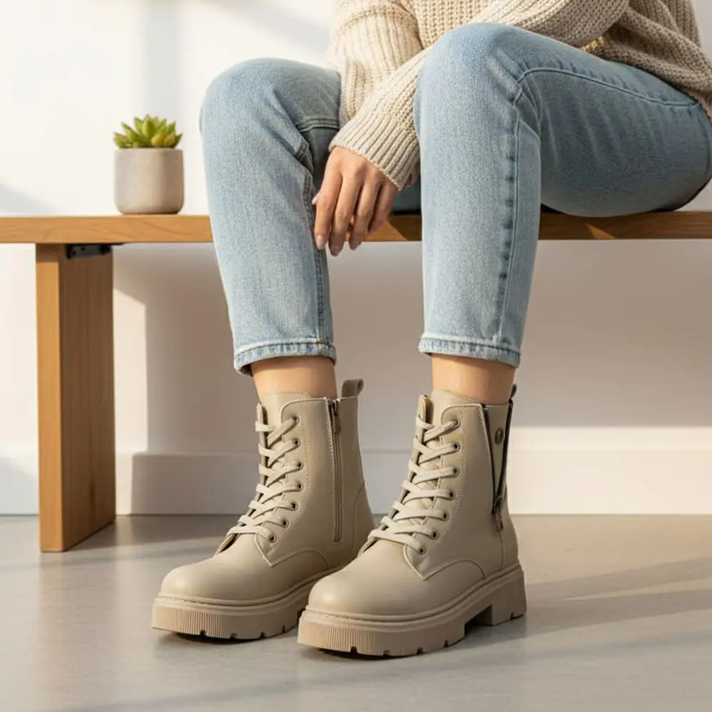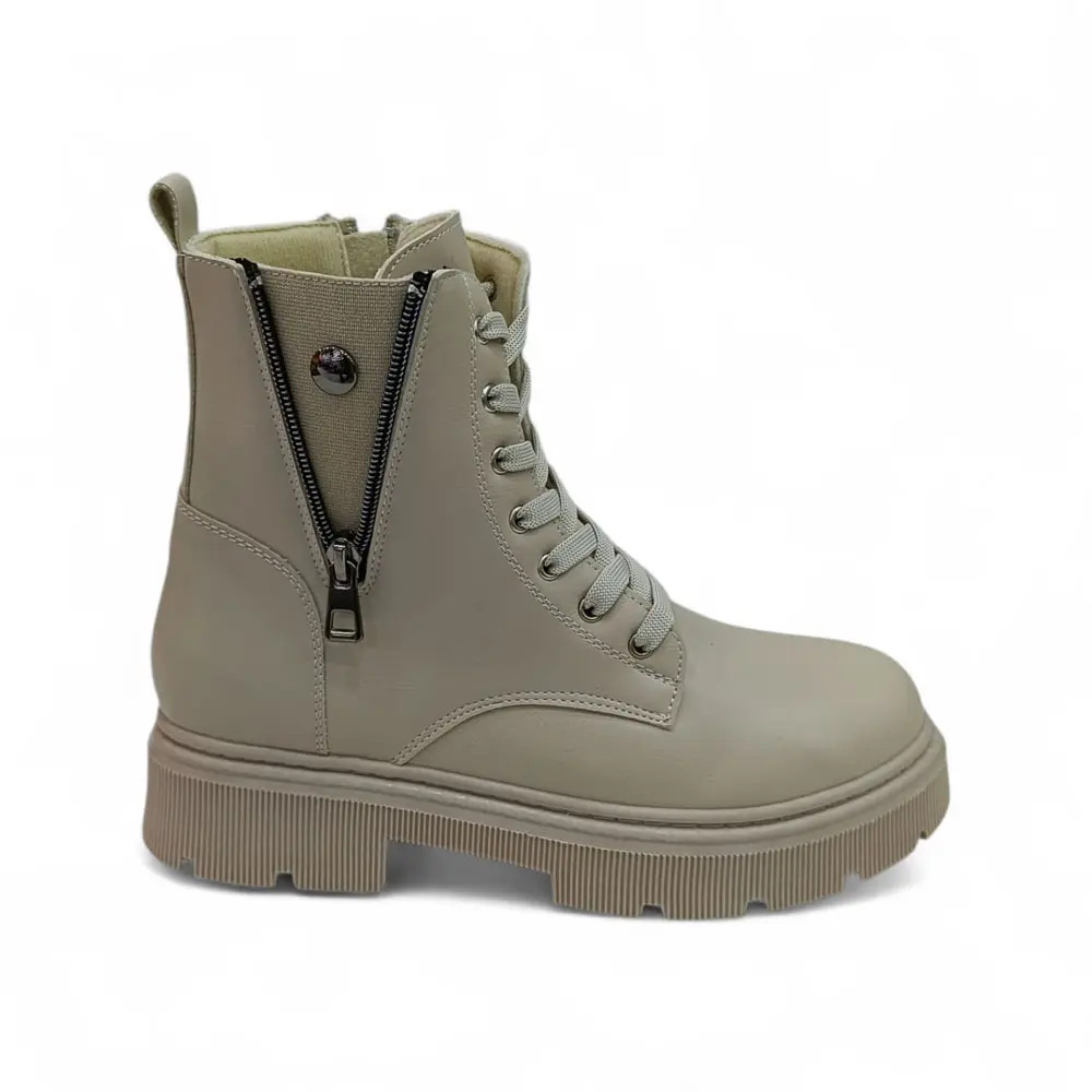 Bej Fermuar Bağcık Detaylı Kadın Bot