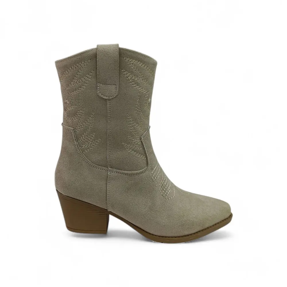 Materyal: Dış yüzey, yumuşak dokulu süet görünümlü malzeme ile kaplanmıştır, bu da botun bohem ve şık duruşunu destekler.