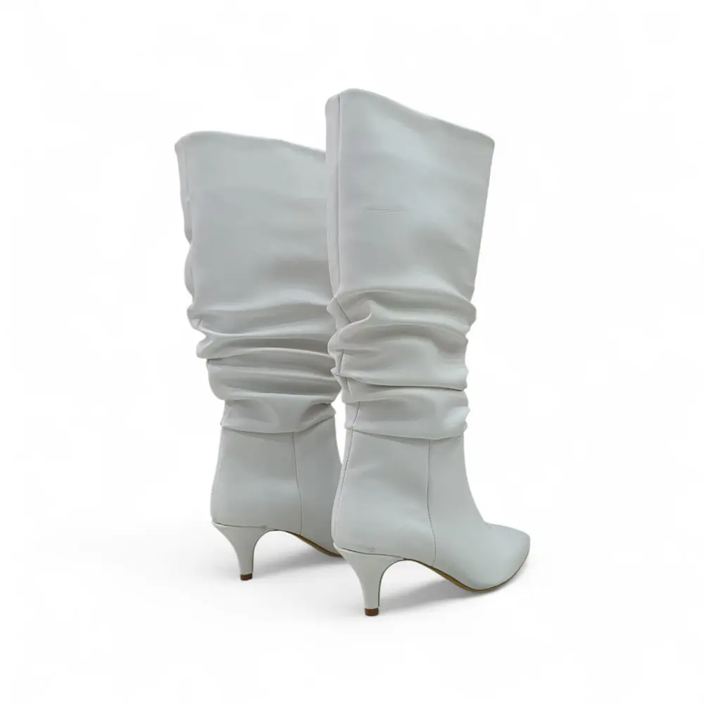 Beyaz İnce Taban Körüklü Dizaltı Sivri Burun Kadın Çizme