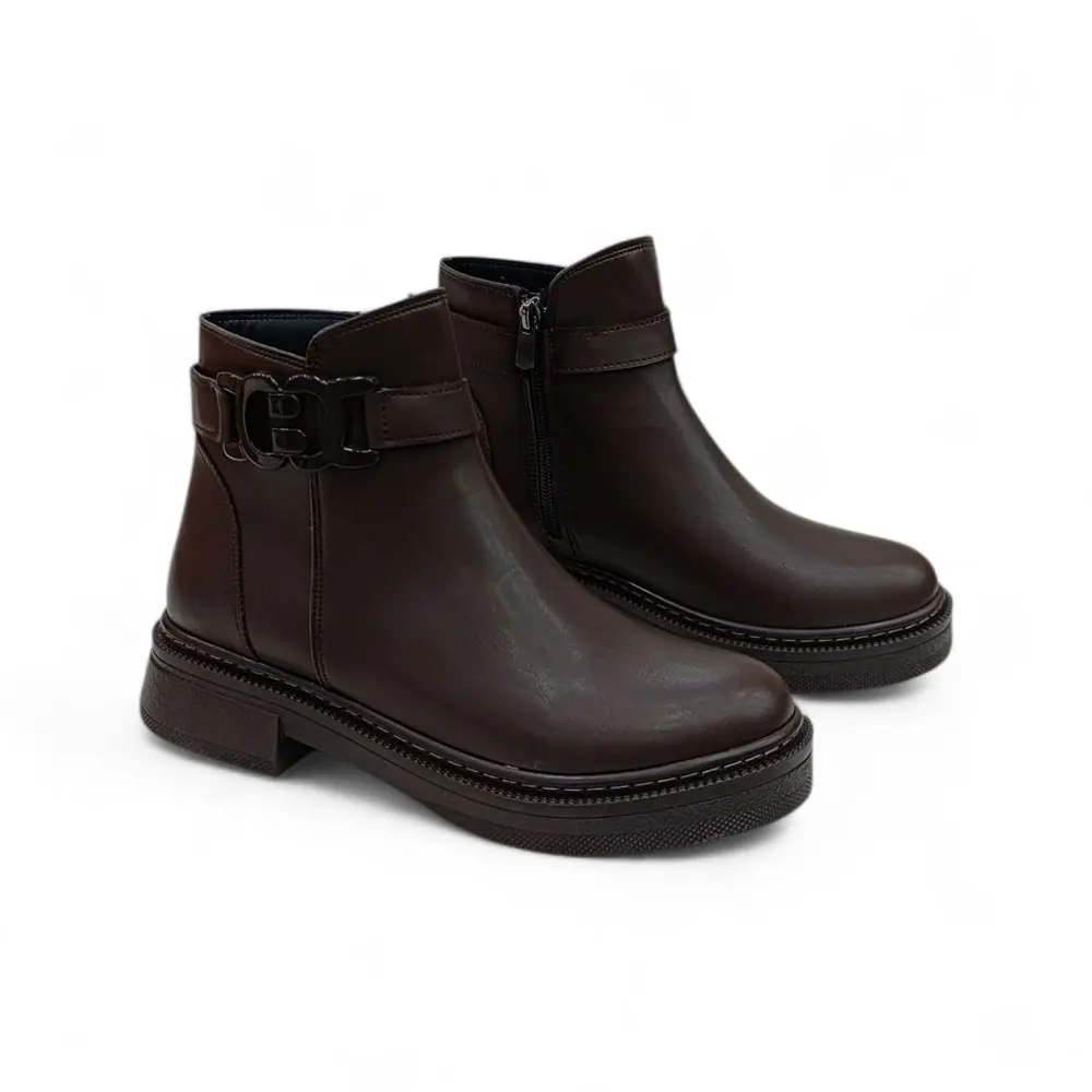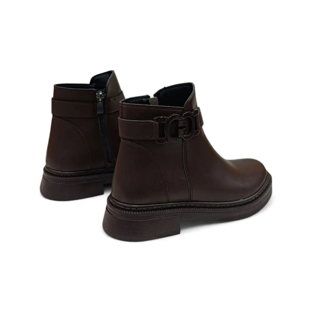 Kahve Toka Detaylı Fermuarlı Kadın Bot