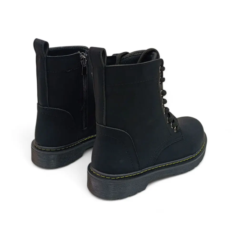 Kontrast Dikiş Detayı: Siyah yüzey ve taban ile kontrast oluşturan sarı veya açık renkli dikiş detayı, bota karakter katar ve klasik bir dokunuş ekler.