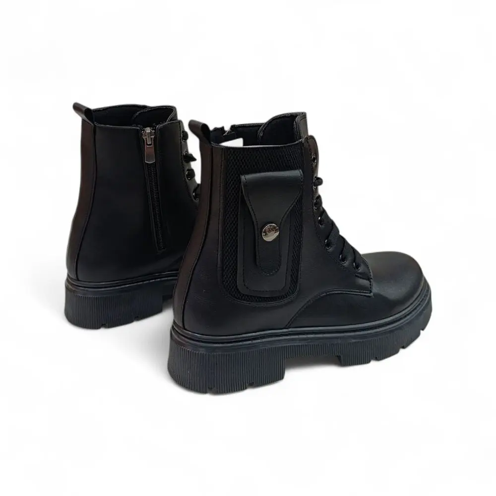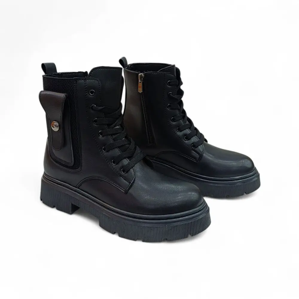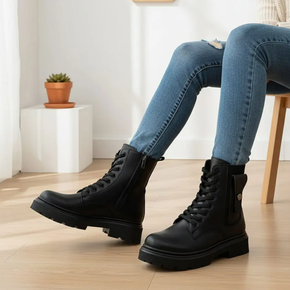 Bu kadın bot modeli, klasik postal çizgisini çağdaş sokak modası detaylarıyla birleştirerek cesur ve fonksiyonel bir stil sunar. Kalın platform tabanı sayesinde boyunuzu uzatırken, bilek kısmındaki cep detayı ile sıradan botlardan ayrılır ve iddialı bir duruş sergiler.