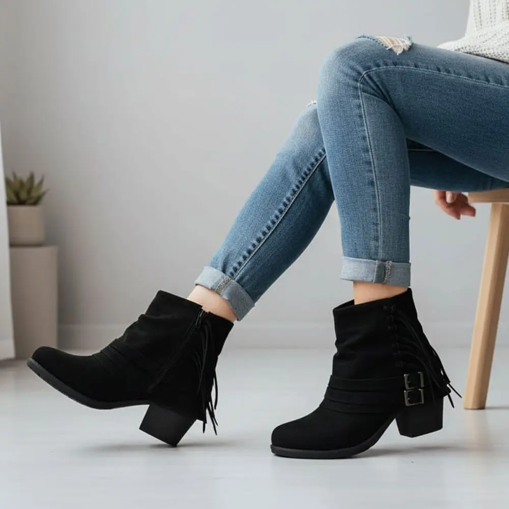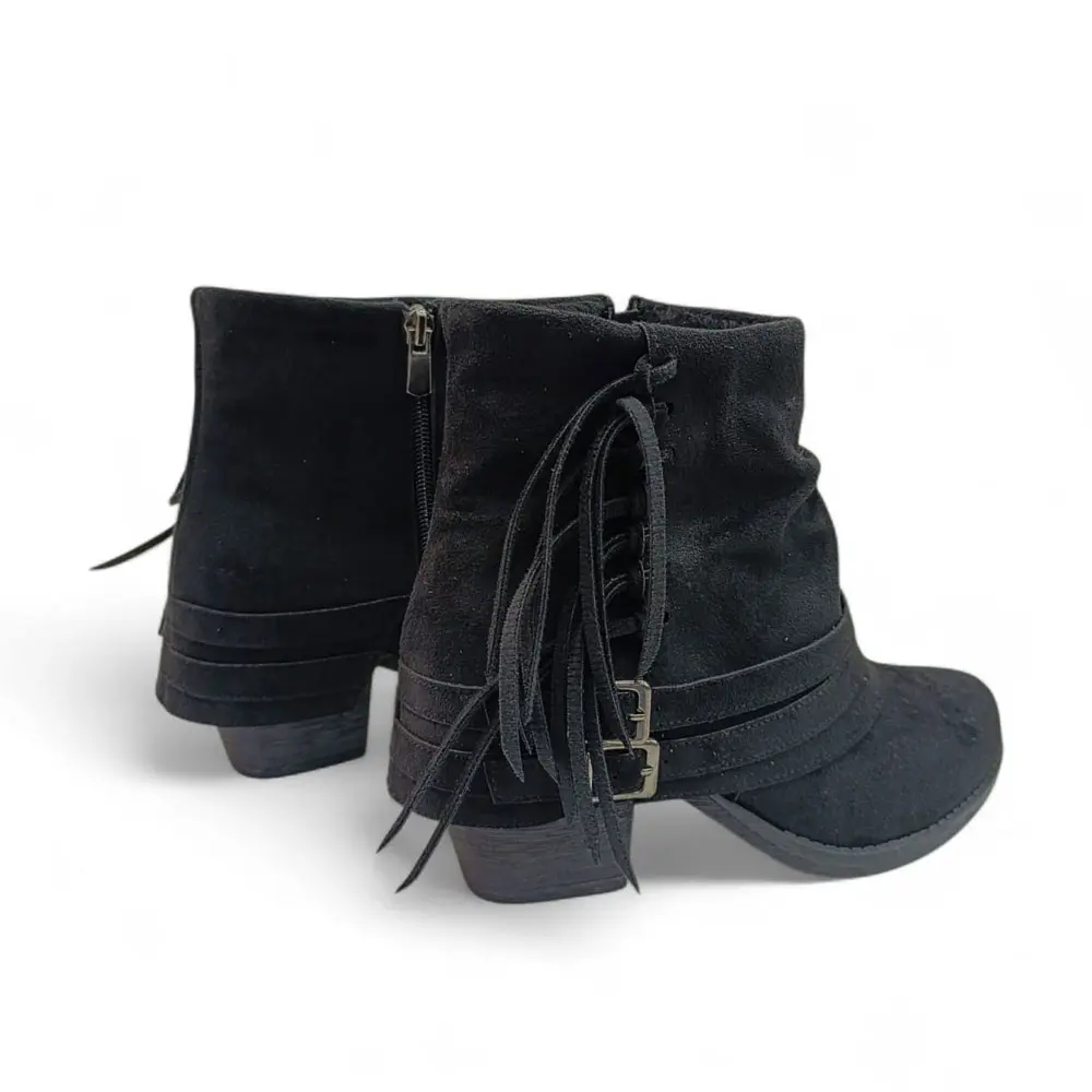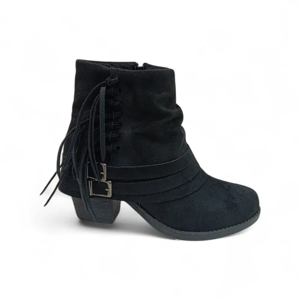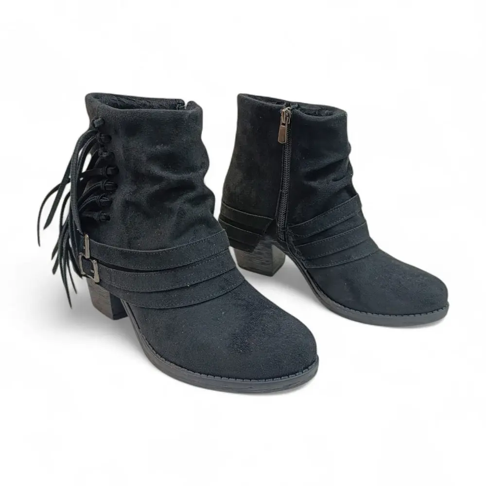 Siyah Süet Püskül Toka Detaylı Fermuarlı Detaylı Kadın Topuklu Bot