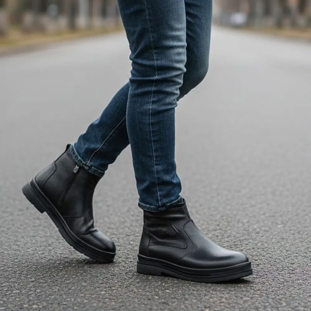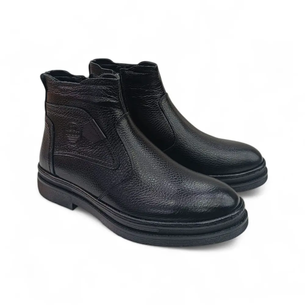 Siyah Yandan Fermuarlı Hakiki Deri Erkek Bot, sade ama güçlü tasarımıyla her tarzın tamamlayıcısıdır.