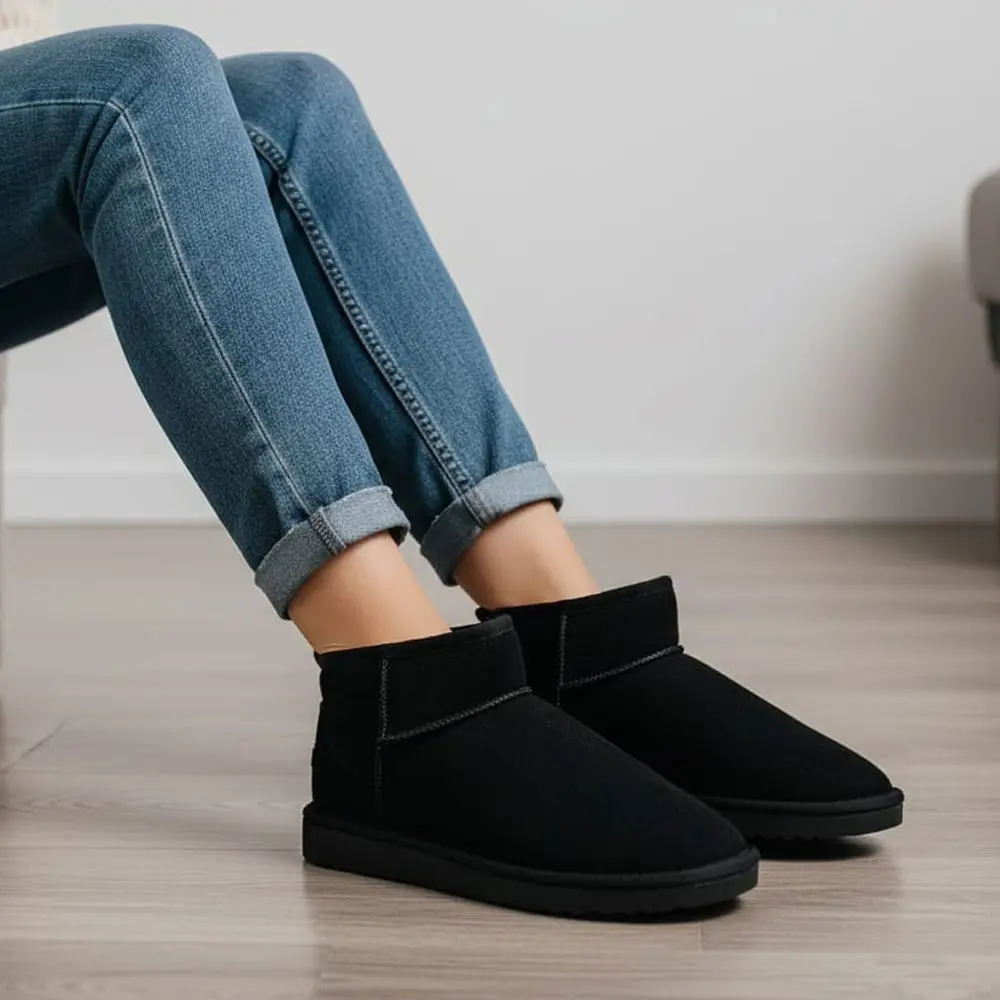 Süet Düz Taban İçi Kürklü Ultra Mini Kadın Bot, markanın klasikleşmiş tasarımını, ultra kısa ve pratik bir silüetle sunuyor. İçi tamamen sıcak tutan kürkle (veya yün astar) kaplı bu bot, ayaklarınızı sararak soğuk kış günlerinde eşsiz bir konfor ve sıcaklık sağlar.